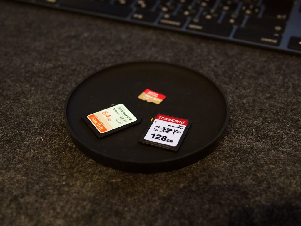 SDカードは、デスクの上ですぐどこかに行ってしまうことが多いので、玄関の鍵と同じで「置き場所」を決めておくと紛失防止につながりそうです(マイクロSDカードはなおさら)。