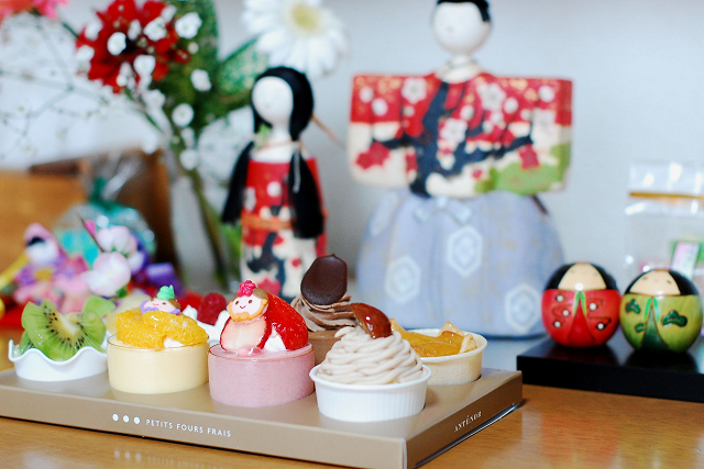 で、ケーキを前において、即席ひな壇の出来上がり。