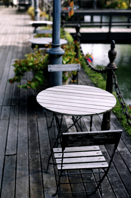 NIKON FGは中央重点測光です。フィルムカメラは中央重点測光が多いですね。画面の中央付近を基準に測光し露出を決定します。この写真では白飛び気味のテーブルに比べ椅子はアンダーとなりました。