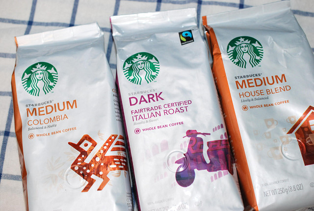 しばらく続けて飲んでいたタリーズをやめて、スターバックスの豆3種類購入。